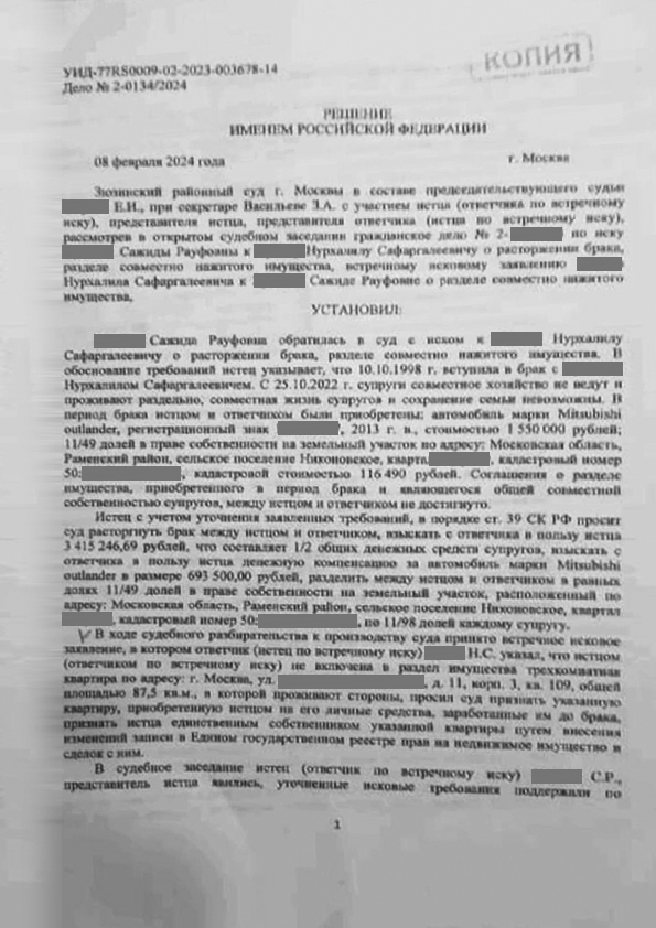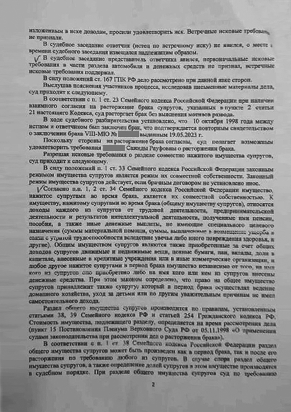 Наш клиент обратилась в суд с иском к супругу. о расторжении брака, разделе совместно нажитого имущества.